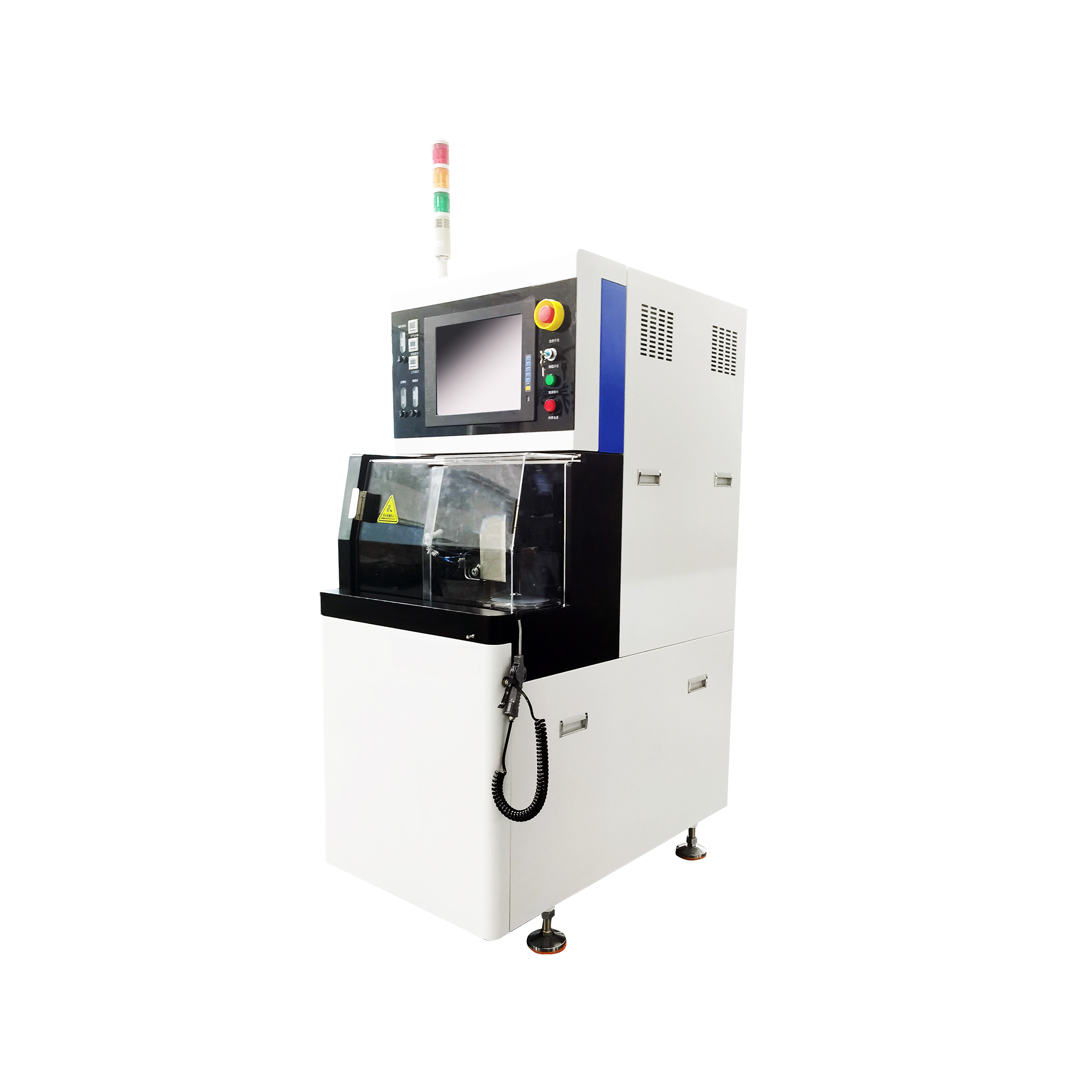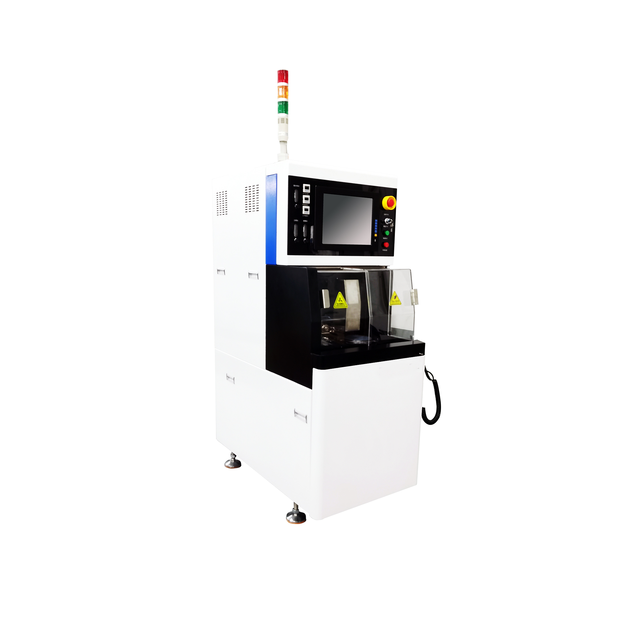 低氣壓、水壓、工作臺伺服、轉臺伺服、主軸驅動、測高系統、控制系統的故障報警,操作腔門安全鎖,漏水檢測、主軸電流監控、真空不足保護功能。